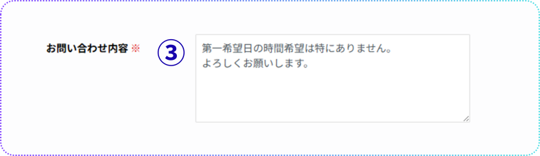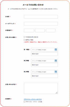もし、どちらでも問題無ければ、お問い合わせ内容に「希望時間は特にありません。」などと、ご記入ください。