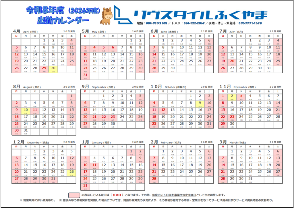 ①令和8年度カレンダーを追加致しました🐴