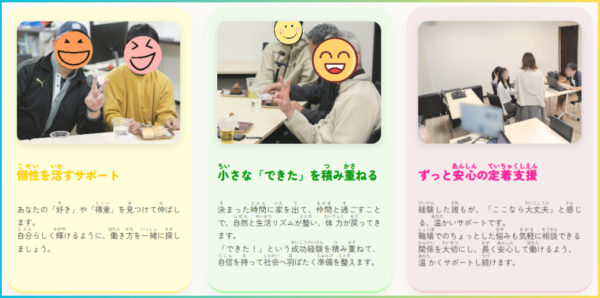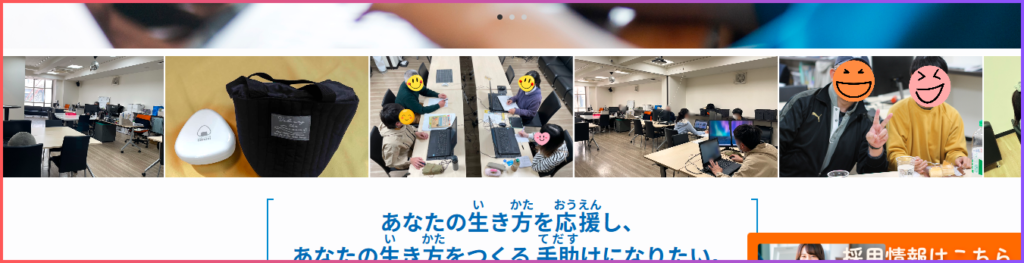 私たち利用者が実際に働いている姿や、オフィスの中の写真を使用しました👓